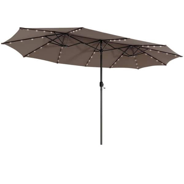 15 ft. Market Twin Patio Umbrella in Light Brown with 48 Solar LED Lights without Weighted Base
