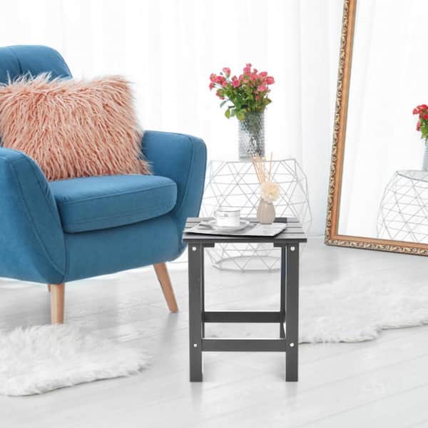 15 in. Patio Square Wooden Outdoor Slat End Table Side Coffee Table in Gray for Garden