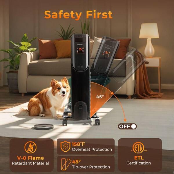1500-Watt Indoor Electric Oil Filled Panel Radiant Space Heater with Thermostat Remote Control and Tip-Over Protection