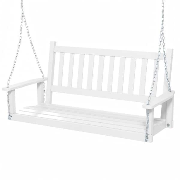 2-Person White Wood Outdoor Porch Swing with 500 lbs. Weight Capacity