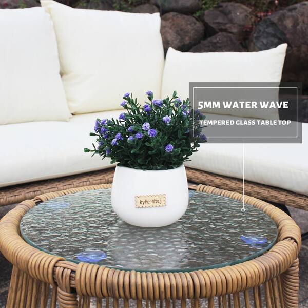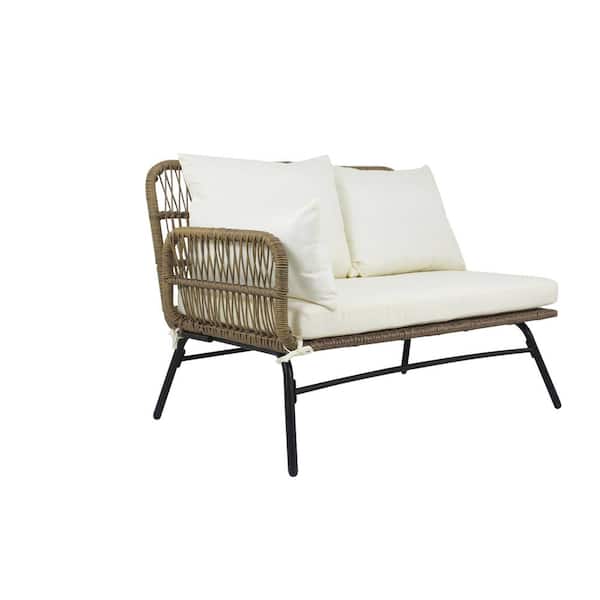 3-Piece Brown Wicker Outdoor Sectional Conversation Sofa Set with Beige Cushions and Pillows