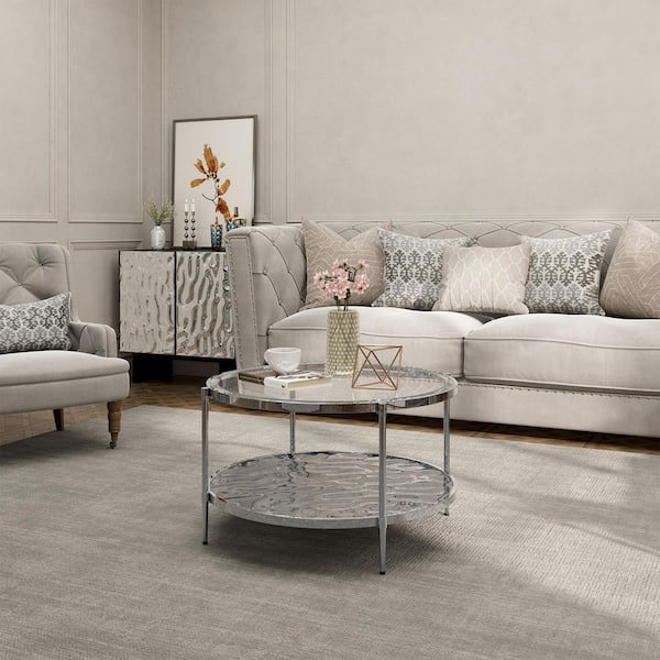 31.5 in. Silver Round Glass Top End Table Stainless Steel Frame Coffee Table 2-Tier Side Table