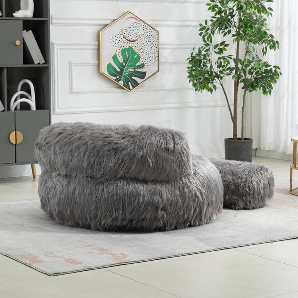 41 in. Armless Fabric Curved Sofa with Ottoman in Gray