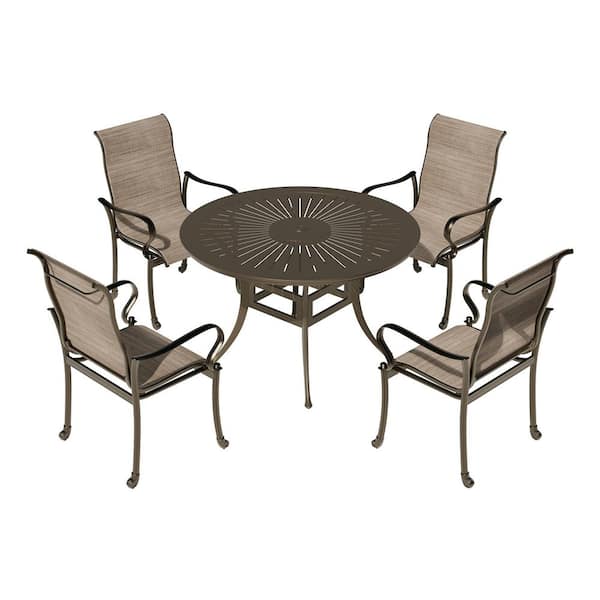 48 in. Aluminum Plate Dining Table and Chairs 5-Piece Set