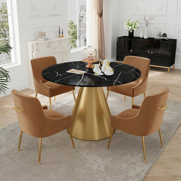 5-Piece Black Marble Counter Top Dining Table Set Seats 4(4 Yellow Chairs)