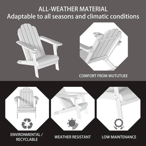 5-Piece Black Metal Patio Conversation Fire Pit with 4-White HDpe Adirondack Chairs Seating Set