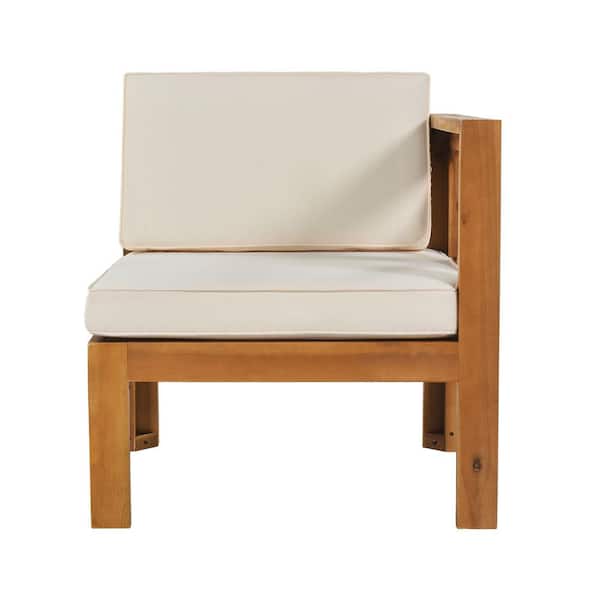 5-Piece Wood Outdoor Sofa Sectional Set Seating Group Set with Beige Cushions