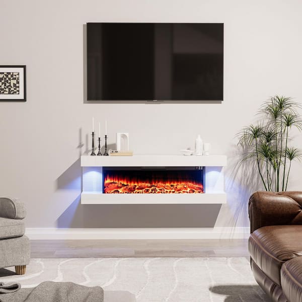 50 in. Wall Mounted LED Electric Fireplace with Floating Mantel, 12 Flame Color and Timer