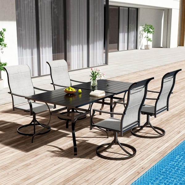 6-Piece Metal Outdoor Dining Set, Textilene Swivel Dining Chairs & Steel Tables w/Umbrella Holes for Garden/Balcony