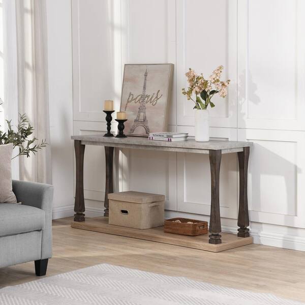 60 in. L Grey MDF Tabletop Rectangle Mid-Century Console Table Wood sofa Coffee Table with 2-Tier Storage Shelf