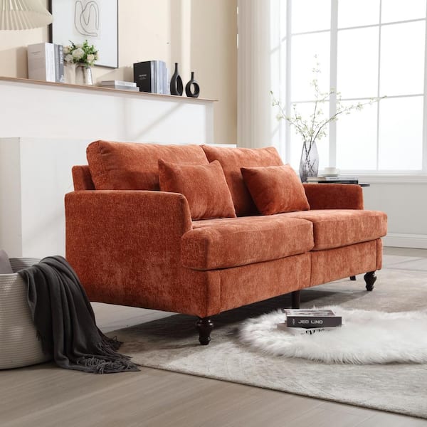 63 in. Square Arm Fabric Rectangle Mid Century Modern Chenille Loveseat Sofa 2-Seat Upholstered in Orange Chenille