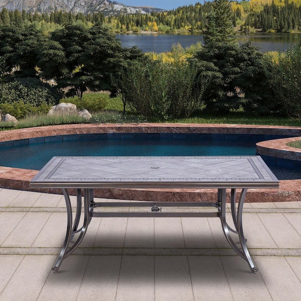 67.8 in. L x 39.8 in. W Aluminum Rectangle Patio Dining Table Porcelain Top Dining Table with Umbrella Hole