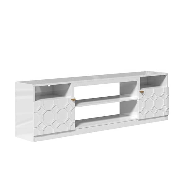 70 in.W White Storage Entertainment Center with Adjustable Shelf Fits TV Up to 80 in.