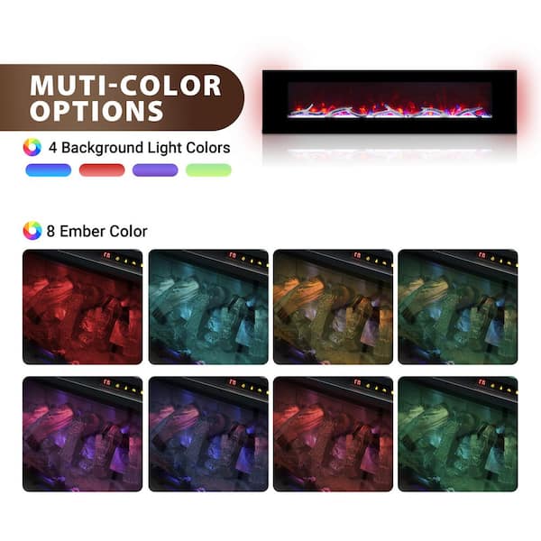 72 in. 1500W Wall-Mount Fireplace in Black with Multicolor Flame