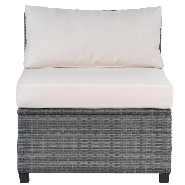 8-Piece Wicker Outdoor Sectional Sofa Set with Beige Cushions Pillows and Coffee Table