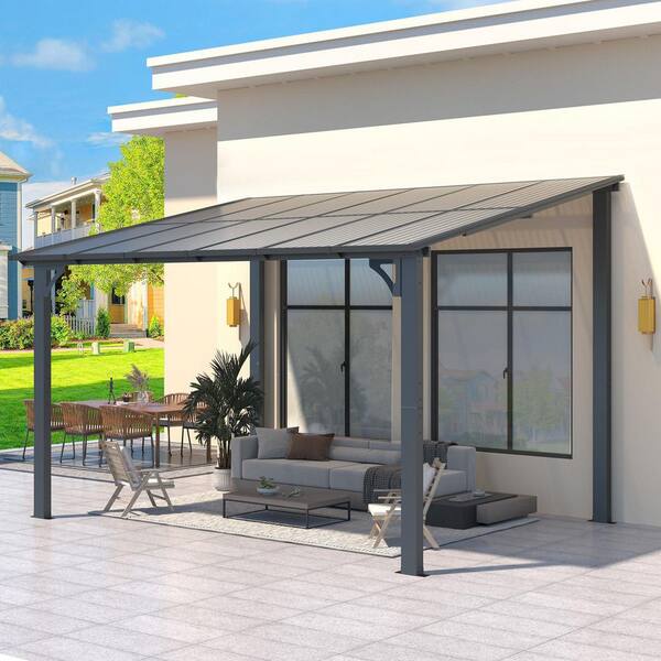 8 ft. x 12 ft. Gray Aluminum Sloped Roof Hardtop Pergola with UV-Blocking Polycarbonate Patio Cover for Backyard