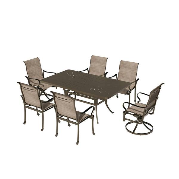 Aluminum Plate Rectangular Dining Table and Chair 7-Piece Set Outdoor Dining with Umbrella Hole