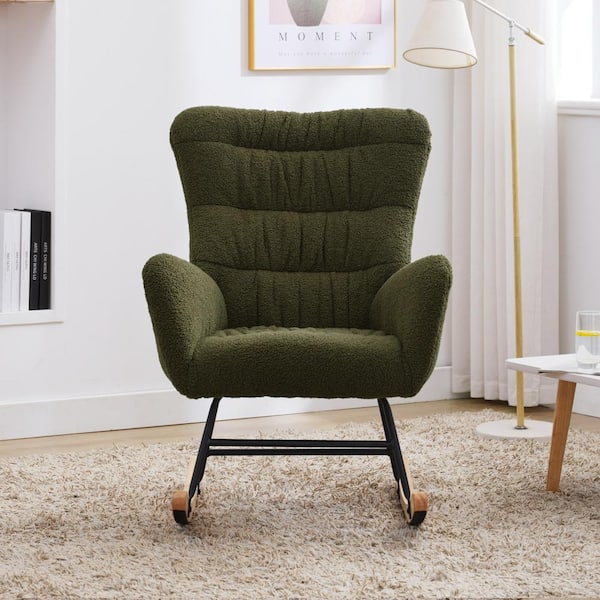 Dark Green Nursery Rocking Chair, Teddy Upholstered Glider Rocker, Rocking Accent Chair with High Backrest