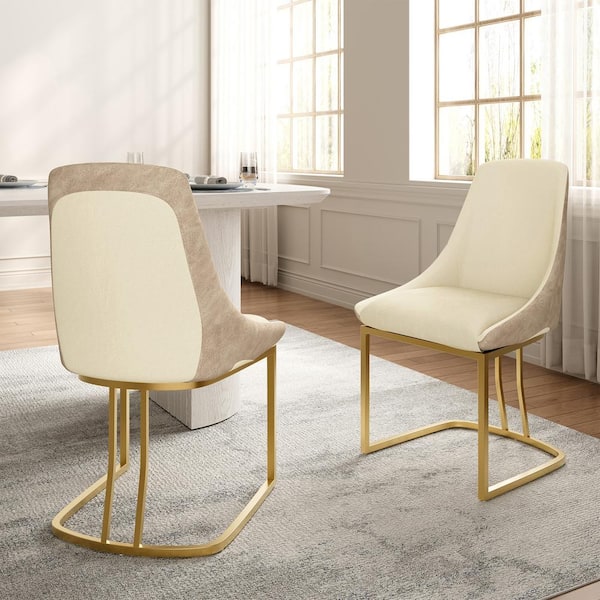 Modern Beige Dining Chair with Metal Legs (Set of 2)