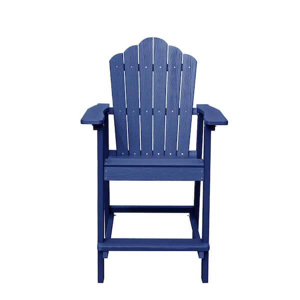 Navy Blue Plastic Adirondack Armchair with Footrest and Wood Grain