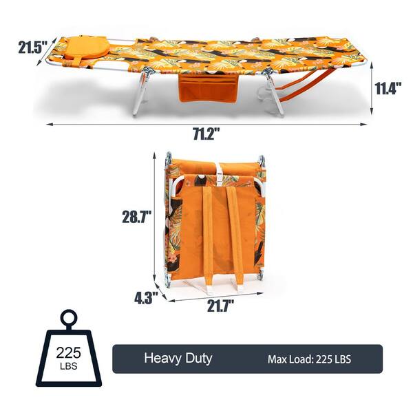 Outdoor Metal Frame Orange Bird Print Beach Chair Lounge Chair with Footrest and Side Pocket