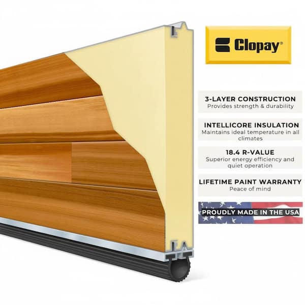 Modern Steel 16 ft x 7 ft 18.4 R-Value Insulated Wood Look Plank Cedar Garage Door without Windows