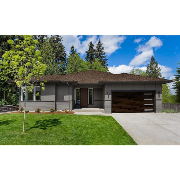 Modern Steel 16 ft. x 7 ft. 18.4 R-Value Insulated Wood Look Plank Espresso Garage Door with Slim Windows