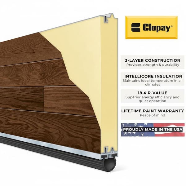 Modern Steel 16 ft. x 7 ft. 18.4 R-Value Insulated Wood Look Plank Kona Garage Door with Slim Windows
