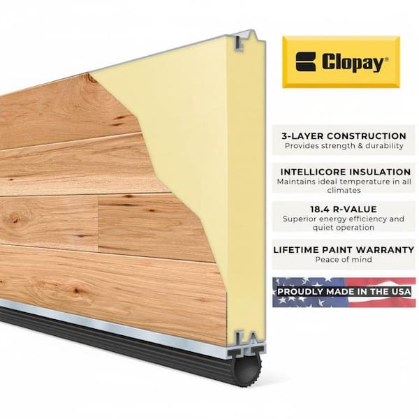 Modern Steel 8 ft x 7 ft 18.4 R-Value Insulated Wood Look Plank Natural Garage Door without Windows