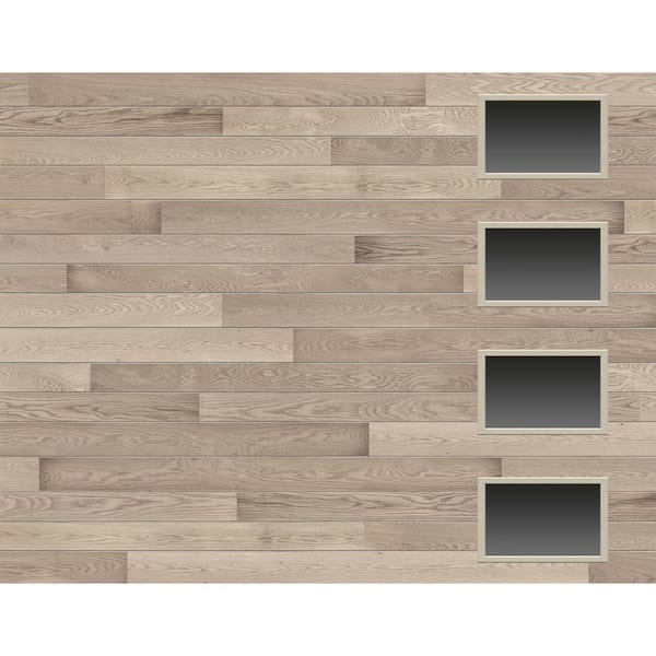 Modern Steel 9 ft. X 7 ft. 18.4 R-Value Insulated Wood Look Plank Coastal Gray Garage Door with Windows