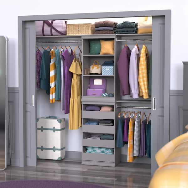 Modular Storage 73.38 in. to 93.43 in. W Smoky Taupe Reach-In Tower Wall Mount 5-Shelf Wood Closet System