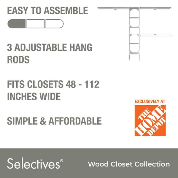 Selectives 76.85 in. W x 112.85 W White Basic Narrow Wood Closet System Kit with Top Shelves