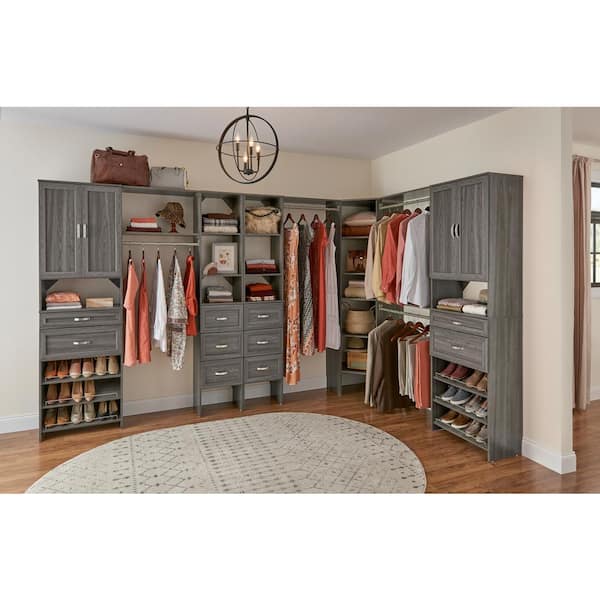 Style+ 73.1 in W - 121.1 in W Coastal Teak Shaker Style Basic Plus Wood Closet System Kit