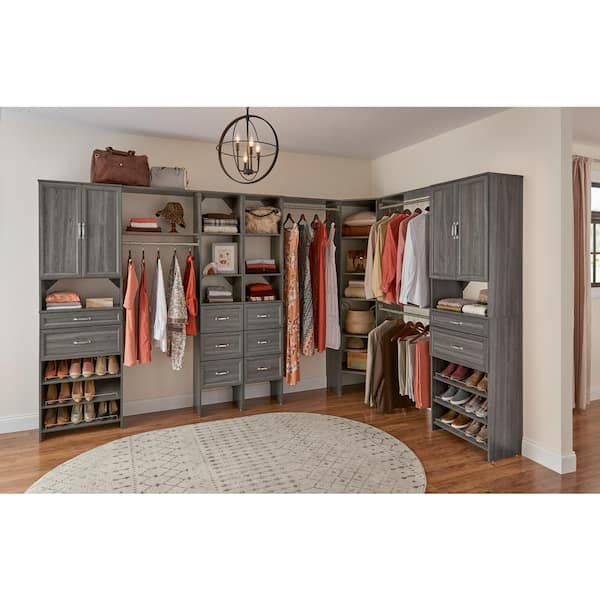Style+ 73.1 in W - 121.1 in W Coastal Teak Traditional Style Basic Plus Wood Closet System Kit