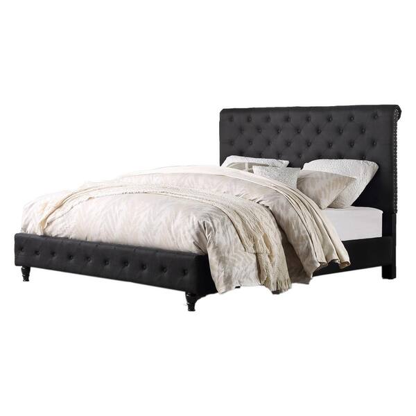 Clover Modern Black California King Tufted Bed with Nailhead Trim