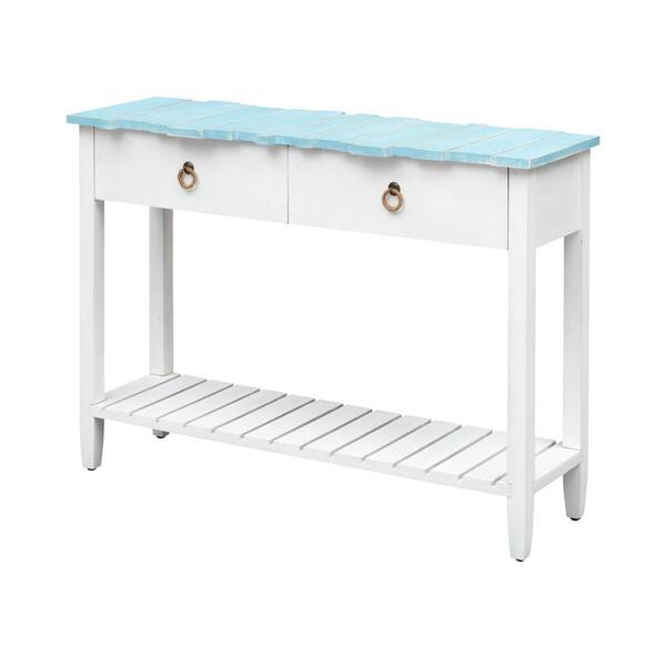 Boardwalk White & Teal 42 in. Wooden Console Table with 2 Drawers