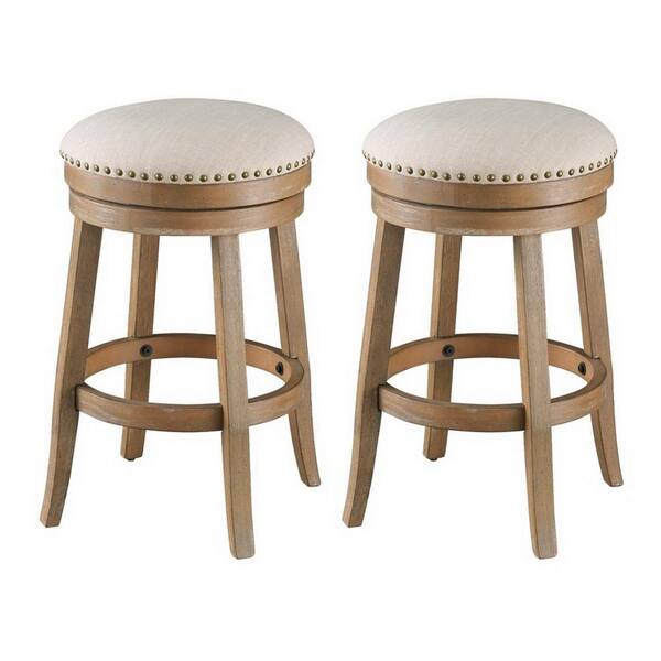 Light Wood Upholstered Swivel Counter Stools (Set of 2)