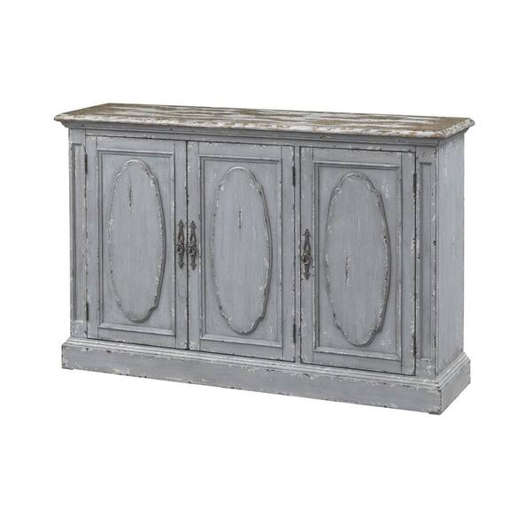 Sutton Aged Blue-Grey 56.63 in. Textured Credenza with 3-Doors