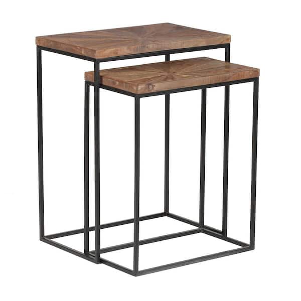 20 in. Rectangle Rayz Brown and Black Metal, Wood Top and Black Metal Frame, and Sunburst 2-pieces Nesting End Tables
