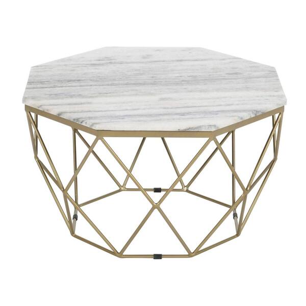 32 in. Callista White and Gold Octagon Marble Top Material Coffee Table