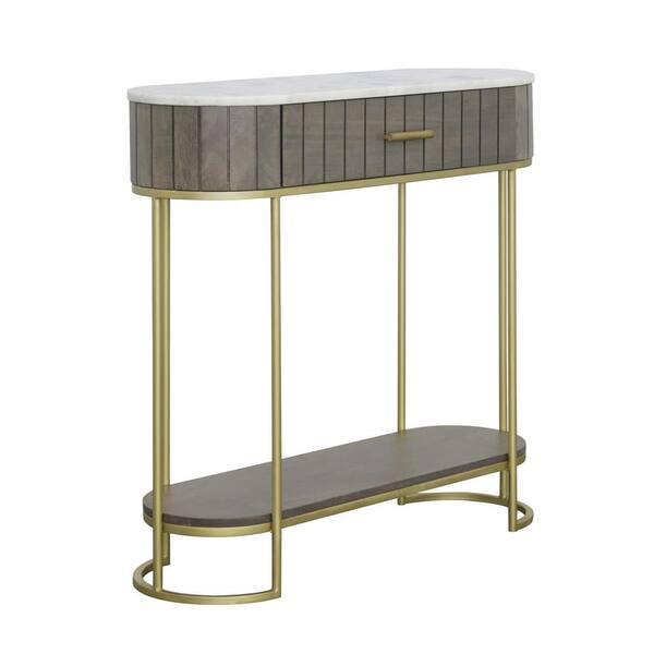 35 in. Nolan Grey and White Oval Marble Top Console Table With 1-Drawer