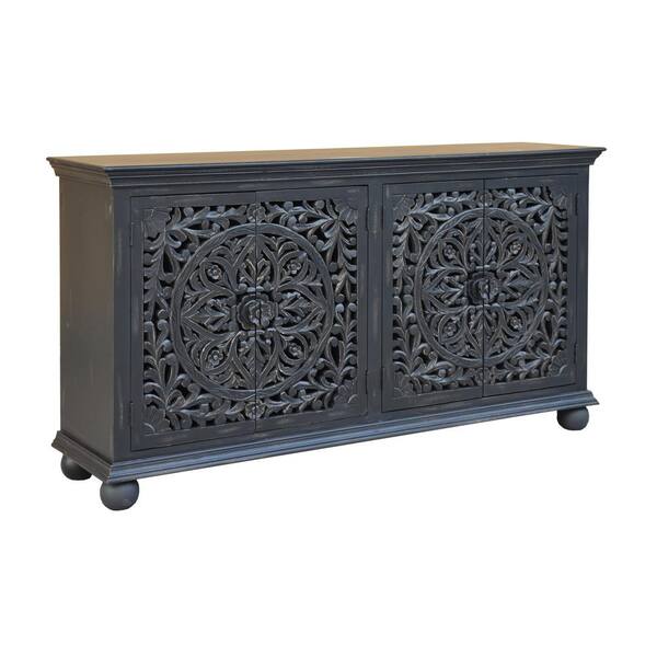 Bree Black distressed Wood Top 70 in. Sideboard with 4-Doors