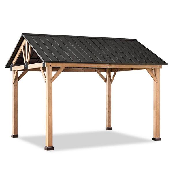 11 ft. x 13 ft. Solid Wood Patio Gazebo Garden Gazebos Cedar Frame and Steel Hardtop