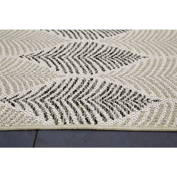 Coastal Foliage Black and Beige 5 ft. 3 in. x 7 ft. 10 in. Floral Polypropylene Indoor/Outdoor Area Rug