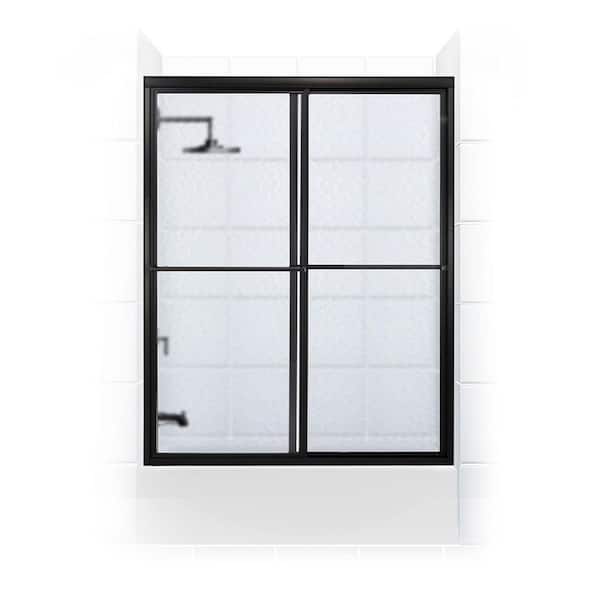 Newport 52 in. to 53.625 in. x 56 in. Framed Sliding Bathtub Door with Towel Bar in Matte Black and Aquatex Glass