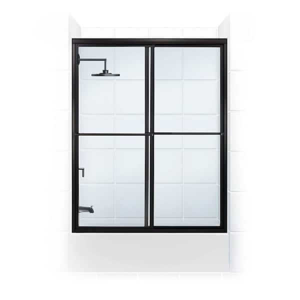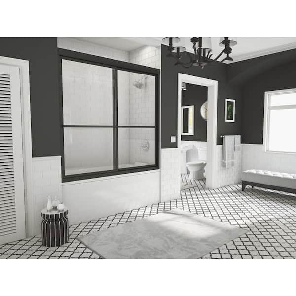 Newport 56 in. to 57.625 in. x 58 in. Framed Sliding Bathtub Door with Towel Bar in Matte Black and Clear Glass