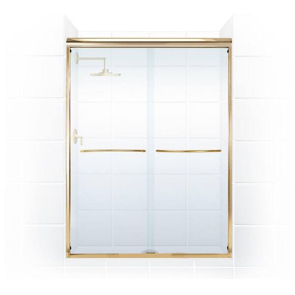 Paragon 3/8 Series 48 in. x 71 in. Semi-Framed Sliding Shower Door with Radius Curved Towel Bar in Gold and Clear Glass