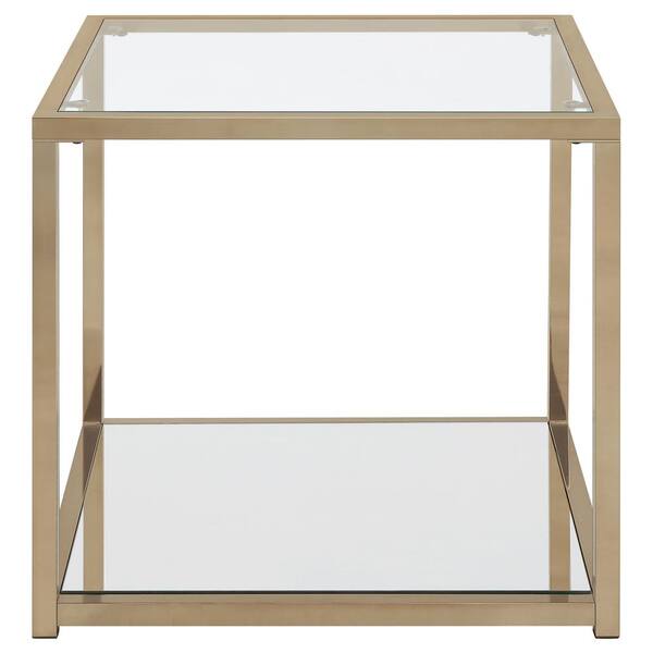 23.5 in. Chocolate Chrome Square Glass End Table with Mirror Shelf