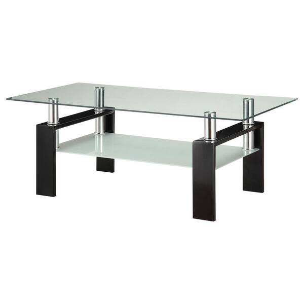 24 in. Black/Chrome Medium Rectangle Glass Coffee Table with Shelf