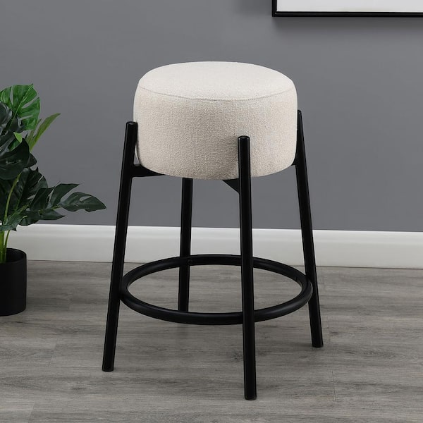 25 in. H Black and White Backless Metal Frame Counter Height Stools with Fabric Seat (Set of 2)